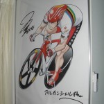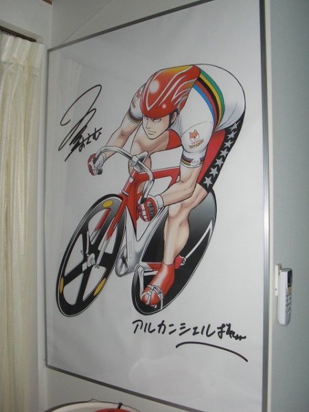 そしてもう一つは天才漫画家の石渡治先生が描いてくれたアルカンシェルのキャラクター。説明不要のイラストの入手経緯は今思うと恐れ知らずの厚かましさのなせる業。石渡先生の器の大きさに合わせ、展示できる最大限に引き伸ばさせていただいてます。