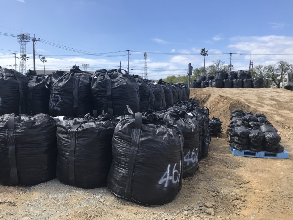 それでもこれだけでかけりゃ嫌でも気づく。しばらく前からAEC試乗コース近くに積み上げられた袋。これなんだ?